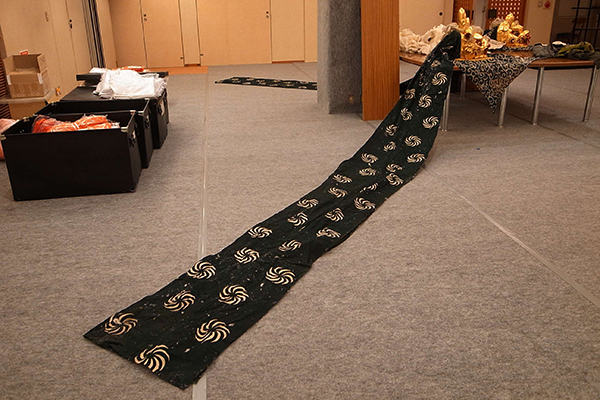 本展で展示される獅子頭は、布部分の全長が5m弱に及び、使用当時に雄大に待っていた姿を想像させます。